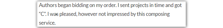 What I realized is that they have come up with a mediocre service. A fully professional firm would have a lot more to offer. I found the writers kind of amateur, although they claim to be experienced. I didn't bother me much because my teacher didn't ask me to redo the assignment.