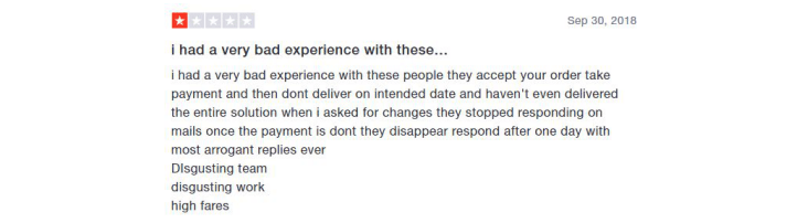 No on-time delivery of the solutions. Not providing proper answers to the questions. Getting fail grade with the Solution provided by this site. No response to the mails once the payment is done.