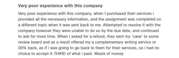 Thanks for sharing your view here. I was planning to take help from this service but now I'm really not sure. I will look for another assignment writing service. I don't want to waste my hard earned money after a fraud service!