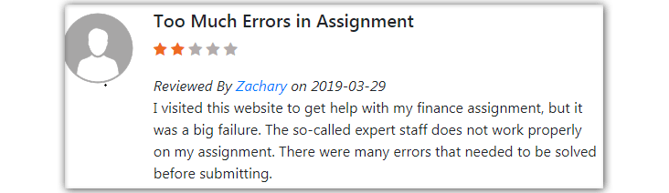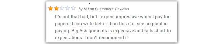 | Customer reviews from several review collector websites paint a poor picture of Bigassignments.com. The website is not reliable and trustworthy. Students should stay away from this website and avail better writing services from several other authentic assignment help services available on the Internet. |