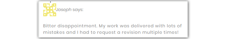 Img source: www.nsw-writers.com Users who have availed different services from Bigassignment.com claim something opposite. On nsw-writers.com, reviews by genuine users state that the customer support representatives have rude behaviour. What's more, the money refund policies are untrustworthy and of dubious nature. |