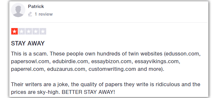 | Highlights: Edusson reviews have rated below 1⭐ out of 5 stars, which clearly shows that Edusson is not legit & safe. 📌 Edusson's major complaints are 'refusing refund', 'high price for last min help', and 'syntax errors'📌. To sum up, Edusson is not legit and safe for customers. |