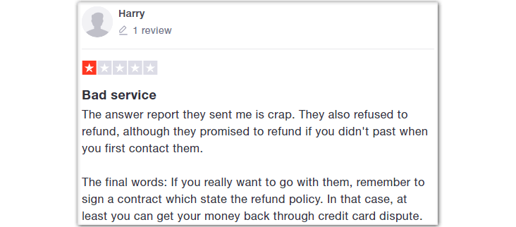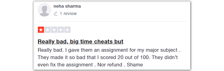 Img source: www.sitejabber.org As we can see in this review that they refused to give refund to the student even after the student scored so low exam. It’s not legal if a company denies giving a refund in spite of giving a total plagiarized assignment. |