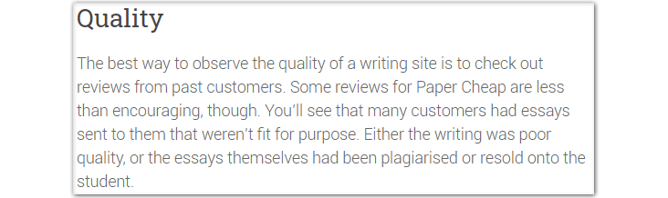 | So, overall, PaperCheap.co.uk is not a very good option to connect and get help for writing assignments. Students might find legal issues with paying them, and other supports. The site might feel trusted at a glance, but an in-depth investigation reveals the actual picture. |