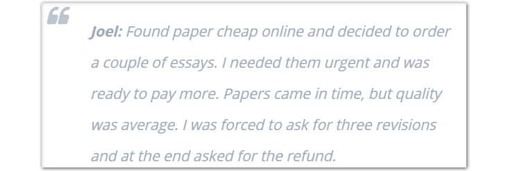 The English essay I received from papercheap was very poorly written. In fact, it seemed like it was written by an ESL student. Frankly speaking, my 5-year old brother could write better English than these people. Never going to avail their service again.
