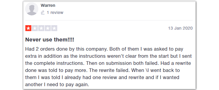 | Like any other assignment writing company, PaperCheap.co.uk also have their website filled with promises like instant support, live chat option, direct call etc. But what do the real-time users have to say? Below is an example which explains that PaperCheap.co.uk is not trustworthy: Img source: www.ukessaysreviews.com Many said that though the customer support team is reachable only through the phone number is sometimes. Mostly there are no replies to the chat. |