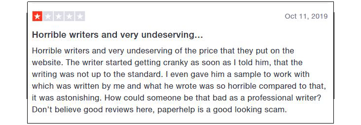 Worst experience ever. PaperHelp.org delivered my essay late and the quality was awful full of grammar mistakes and sloppy work. Support was completely unhelpful and refused to fix anything. Don’t trust their fake reviews online. Save your money and avoid them!