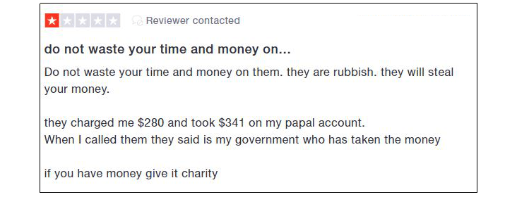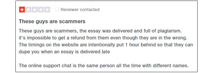 | The website has a working helpline number that supposedly remains active 24x7. The website also has an online chat option. Moreover, the site is integrated with Facebook messenger, which students can use to get in touch with the customer support desk. The website also appears to have a money-back guarantee, but there's a lack of detail regarding that. Source: Trustpilot.com While the company does have a helpline number, you won’t always get an instant response from their end. While the line keeps people on hold for a long time, the customer support executives also sounded rude to some of the students. Moreover, the student reviews suggest that the website always has an excuse to deny students of the money-back facility. |