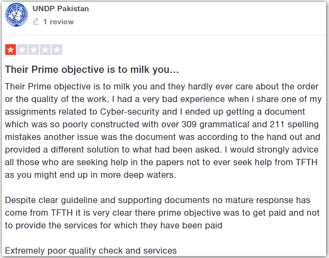 | According to the TFTH review and feedback, TFTH is misleading and almost everyone who opts for their service has a bad experience. After going through all the reviews and feedback, we don’t advise any student to avail of their services. As written in the review below, their primary aim is to “milk you” which means their motives are purely monetary gain. We request everyone to be aware of such services and not fall into their trap.